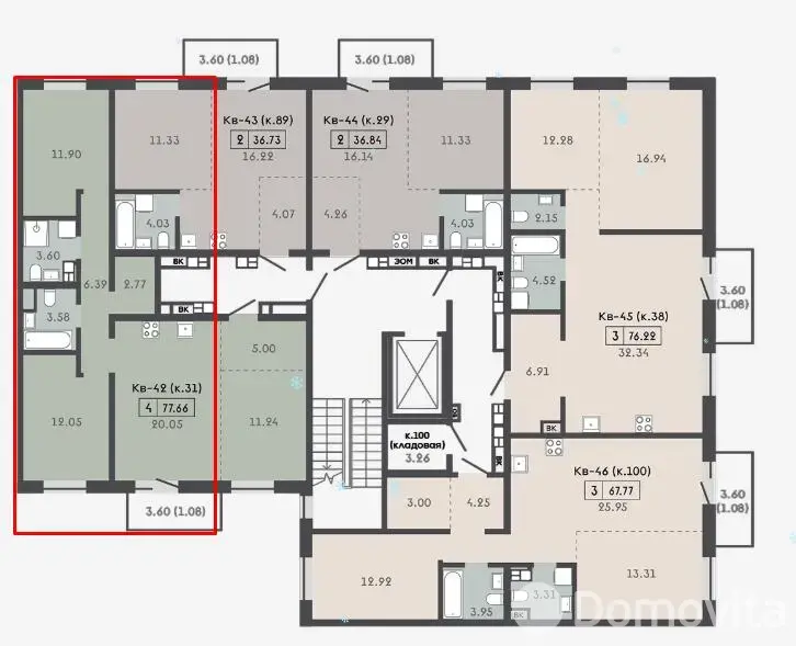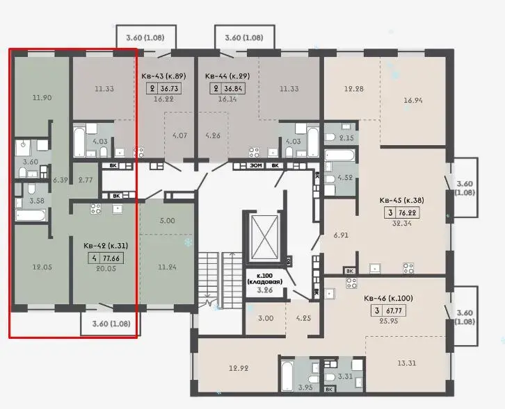 Квартира с кладовой 3,69м2.