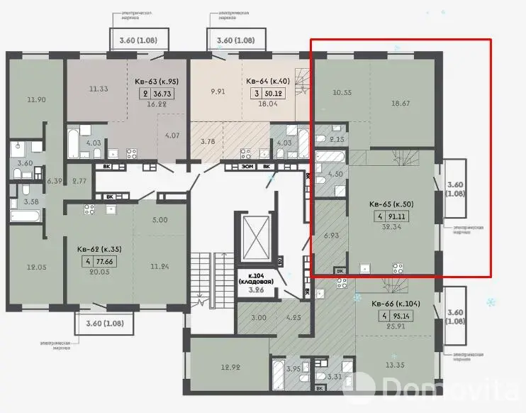 Для каждой квартиры – кладовая в тех. подполье, для некоторых квартир есть кладовые на этаже в угловой секции.