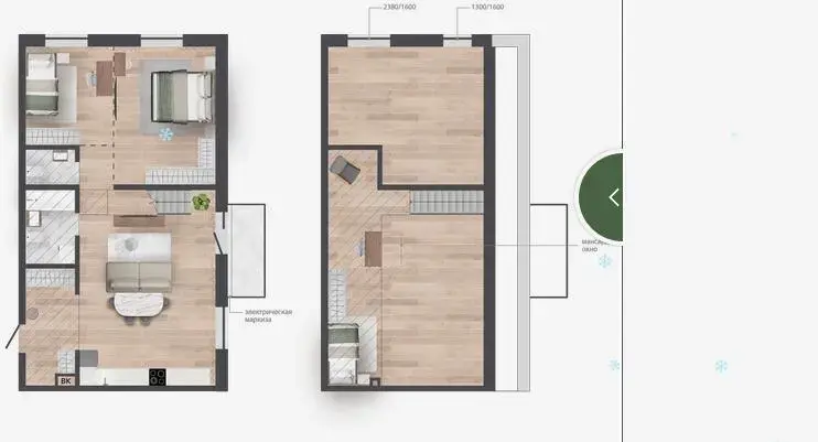 Квартиры на 1 этаже с личными участками-террасами с видом во двор и зеленый коридор.