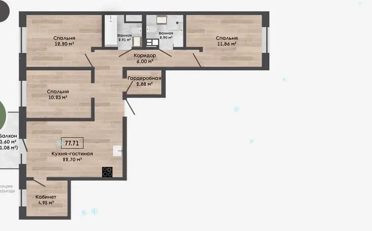 Квартира с отделкой White Box Basic и кладовой 4,67м2.