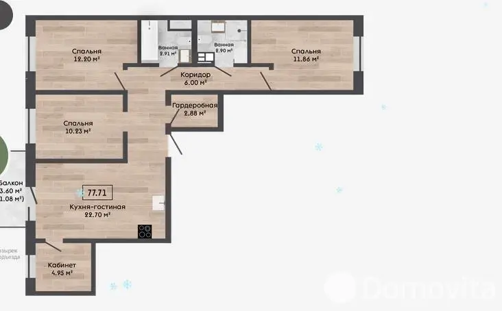 Квартиры с мастер-спальнями, гардеробными, кабинетами.