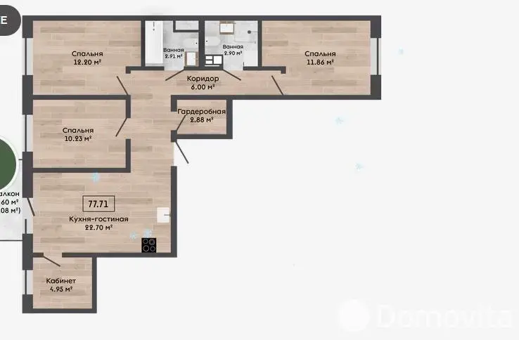 Квартира с отделкой Basic и кладовой 4,64м2.