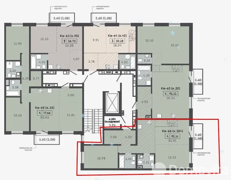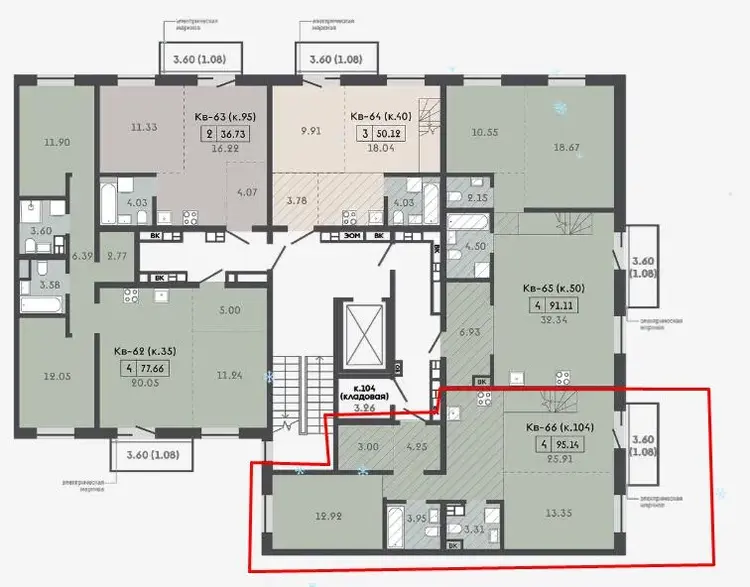 Для каждой квартиры – кладовая в тех. подполье, для некоторых квартир есть кладовые на этаже в угловой секции.