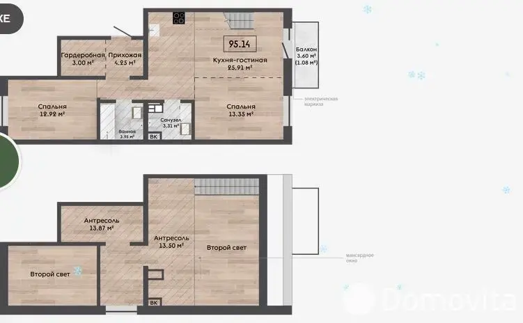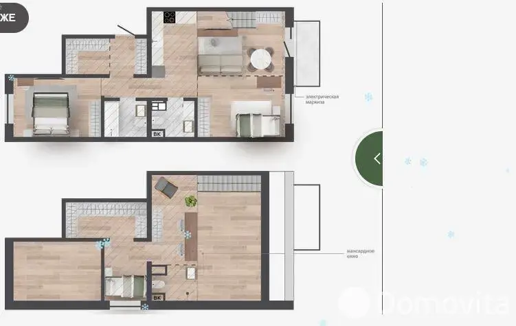 Квартира мансардная с кладовой 3,26м2.