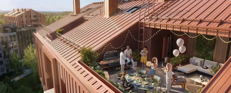 - С двух сторон обрамлён зелёным коридором, обеспечивая жителям живописные виды из окон.