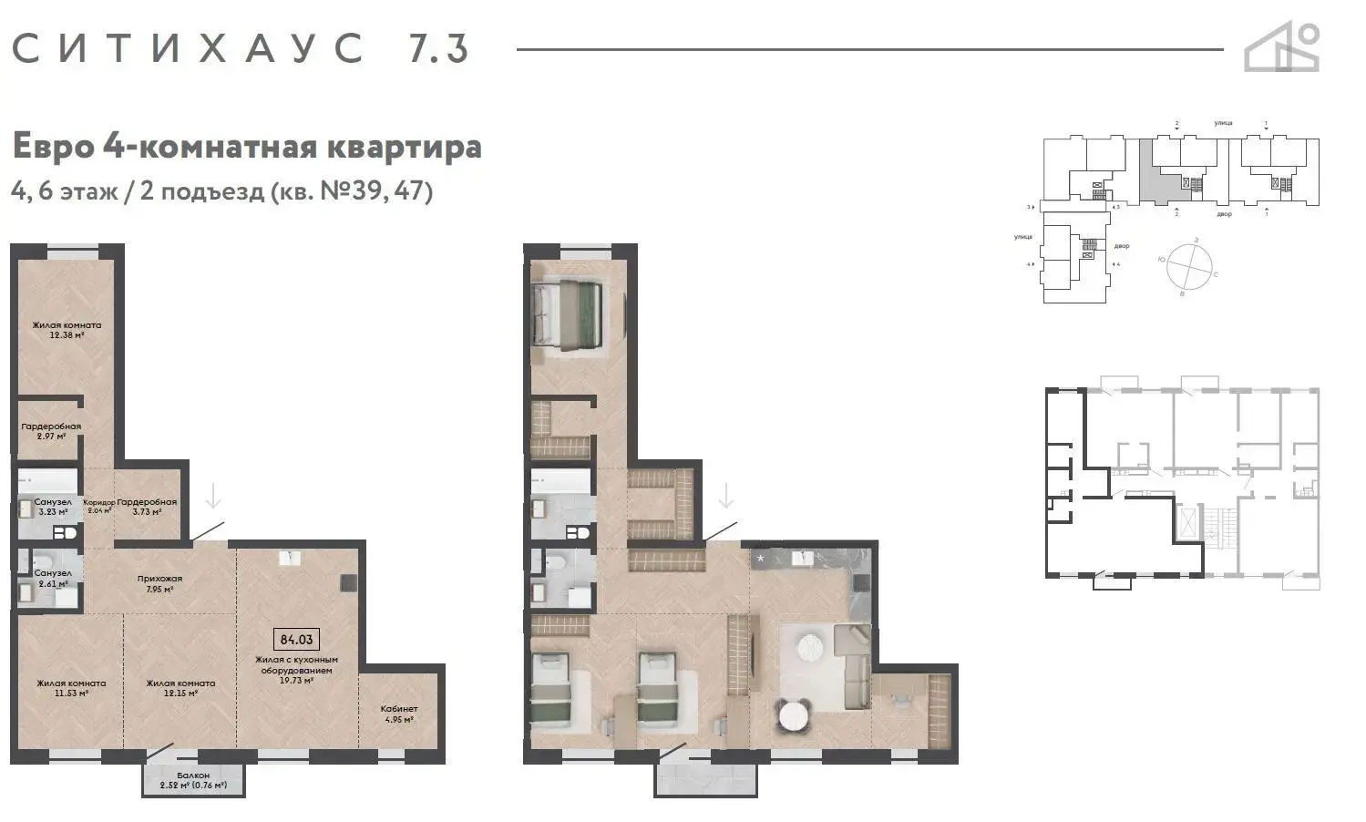 Квартира с отличной планировкой для дружной семьи! Три отдельные комнаты, просторная кухня-гостиная, два санузла (2.6м и 3.2м), две гардеробные (3м и 3.7м), одна из которых расположена в спальне, а вторая в коридоре и кладовая/кабинет (почти 5м) с окном!