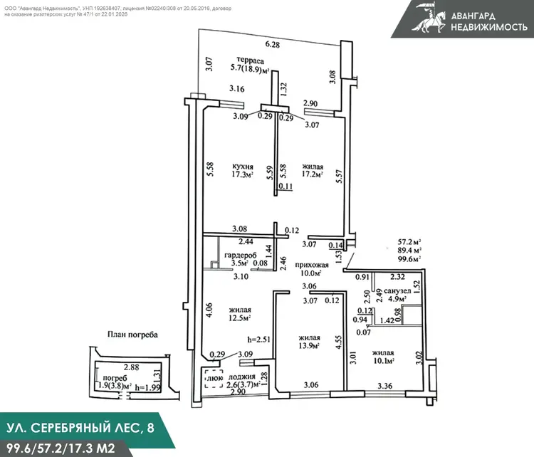2023 г.п., Общая площадь СНБ 99.6 м2, жилая 57.2 м2