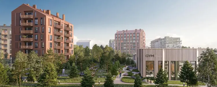- С двух сторон обрамлён зелёным коридором, обеспечивая жителям живописные виды из окон.