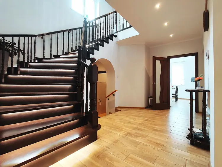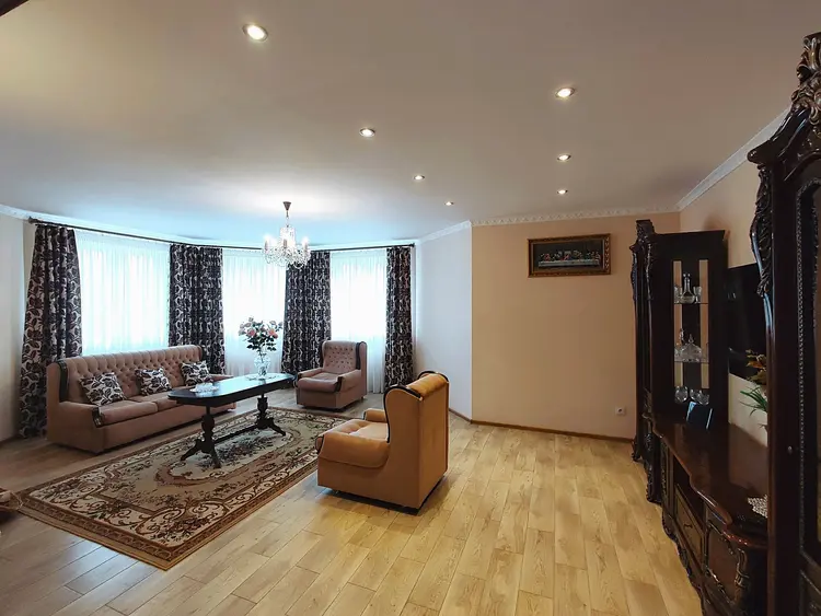 На первом этаже кухня 14 м2 со встроенным кухонным гарнитуром из массива, полностью с мебелью и бытовой техникой, гостиная с действующим камином 35 м2.. Отделка выполнена с элементами стиля лофт из лучших элементов и материалов. Эргономичная планировка вмещает в себя 7 жилых комнат, 3 просторных ванных комнат с сантехникой премиум-класса. Состояние дома идеальное. Светлые тона и высокие потолки создают пространство и воздушность помещения. Из дома есть выход на внутренний двор. Участок выровнен, облагорожен, установлена сливная система. На участке отдельно построено здание 67 м2. Участок крайний огражден.