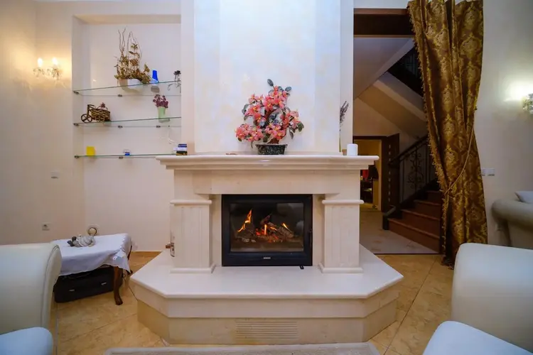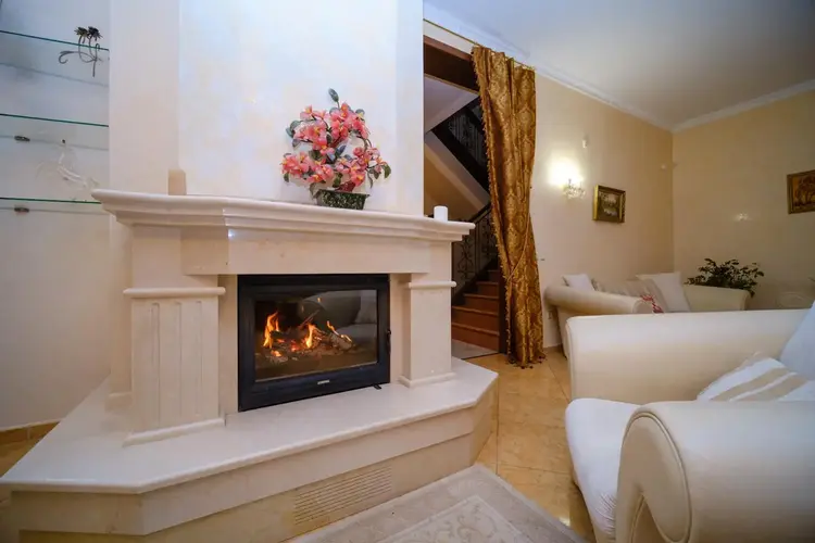 - просторная гостиная с камином (отделан мрамором) и венецианской штукатуркой