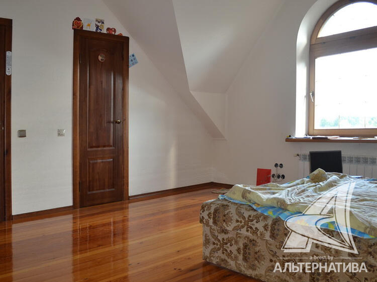 Жилой дом. 2006 г.п. Брестский р-н. Керамический кирпич / жесть. Фундамент: ленточный монолитный; материал - бетон. Цоколь+3 этажа. Общ. - 404,4 кв.м, жил.- 219,4 кв.м, кух.- 12,0 кв.м. 7 комнат. Общ.СНБ - 409,7 кв.м. Коммуникации: электричество, отопление - твердотопливный котел, водоснабжение - скважина и гидрофор, канализация - местная. ХОЗ.ПОСТР: баня с организованной зоной отдыха, беседка, домик для детских игр, дровница, 2 гаража, теплица. Загородный дом на берегу реки. 6 км от Бреста. Все жилые комнаты снабжены ванными комнатами. В доме немало интересных архитектурных и дизайнерских решений. Участок поражает своим нестандартным ландшафтом с природными перепадами высот, в который хорошо вписаны декоративные и плодовые деревья, есть прямой выход к реке. Участок - 0,2500+0,1409 га. Лот - 161661. Смотреть подробнее.