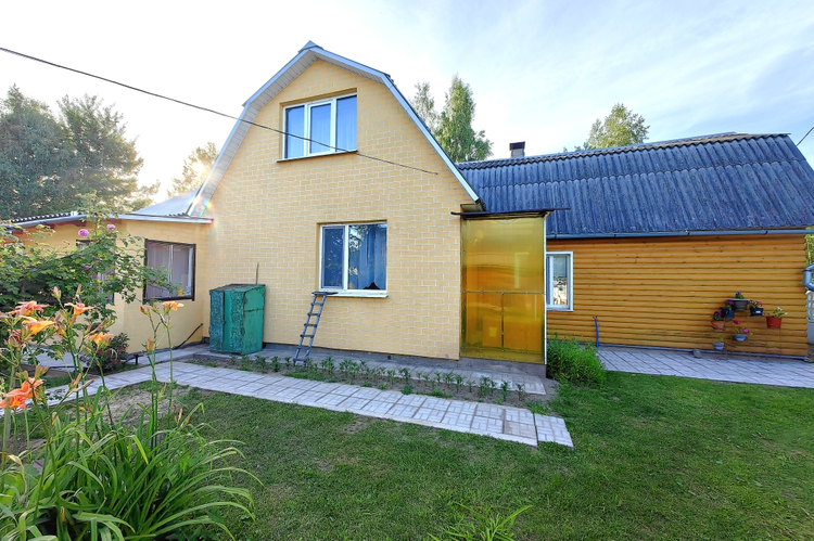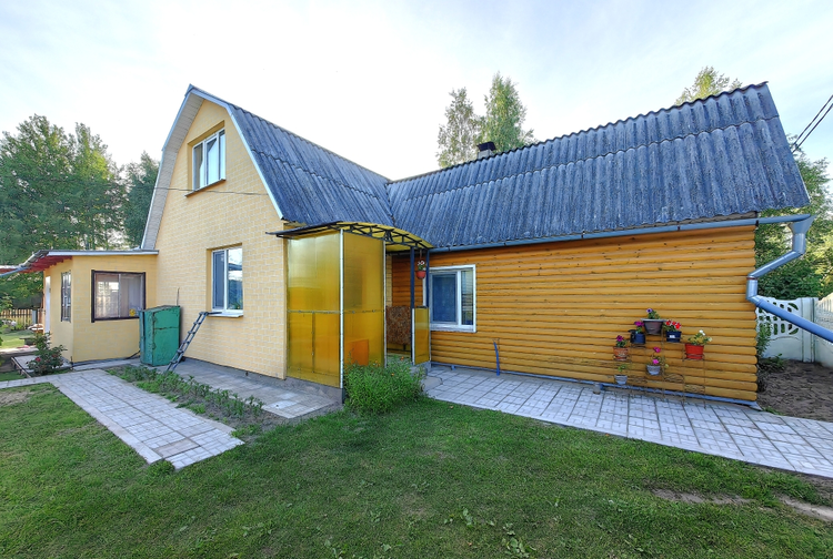 Жилой дом на ленточном фундаменте, бревенчатый, обшит блок хаусом (сосна), пристроена веранда из газосиликатного блока с декоративной отделкой. По желанию возможно отделать второй этаж, (места очень много). В доме две жилые просторные комнаты, кухня-столовая, санузел (туалет с душевой кабиной), котельная и большая веранда. Под полом в кухне имеется подвал 1,2х2,2м во весь рост, для хранения овощей и закаток.