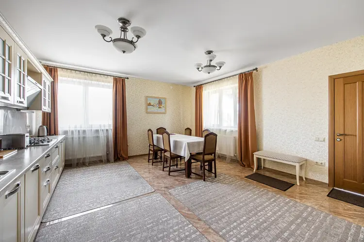 - Общая площадь дома составляет 343,7 м2, жилая - 292,7 м2, площадь кухни - 35 м2.
