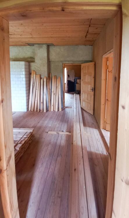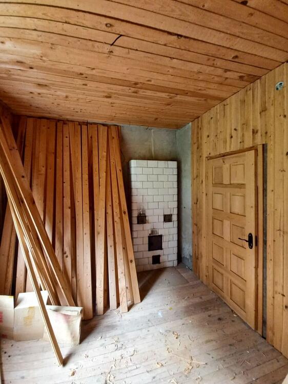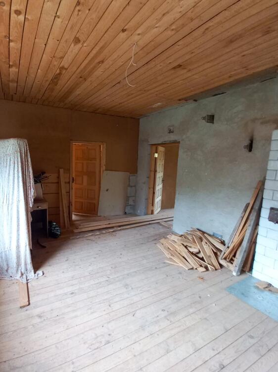 Дом добротный, делали для себя: стены из газосиликатного блока 40 см, обложены кирпичом. Фундамент бутобетонный. Выделены три жилые комнаты и кухня-гостиная. Водоснабжение-колодец (вода заведена в дом). Канализация местная (заведена в дом). Отопление печное.