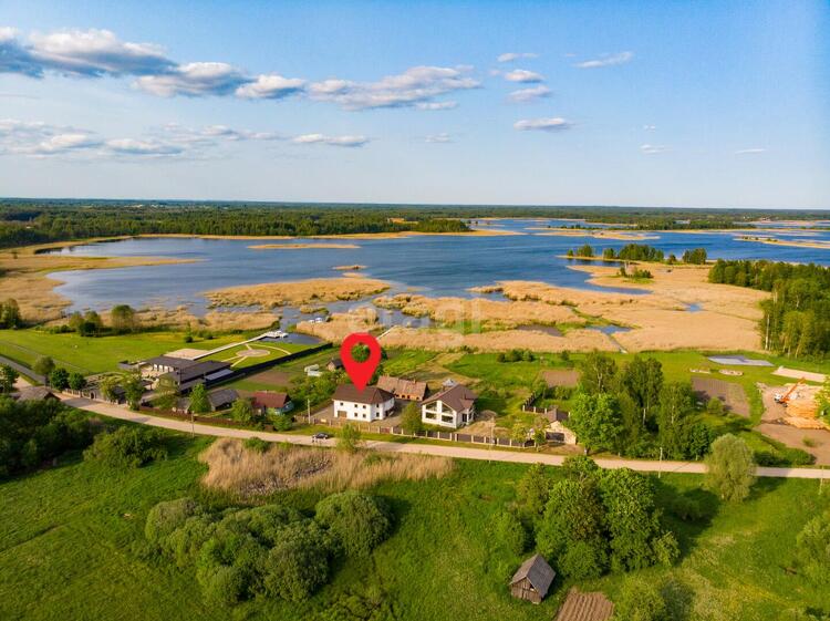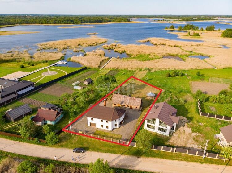 На участке гармонично расположились жилой хозяйский дом со всеми удобствами, гостевой дом с баней, банкетным залом, жилыми комнатами, беседка с барбекю и видом на озеро Снуды! Участок в зоне застройки вымощен тротуарной плиткой, его площадь позволяет реализовать любые ландшафтные решения.
