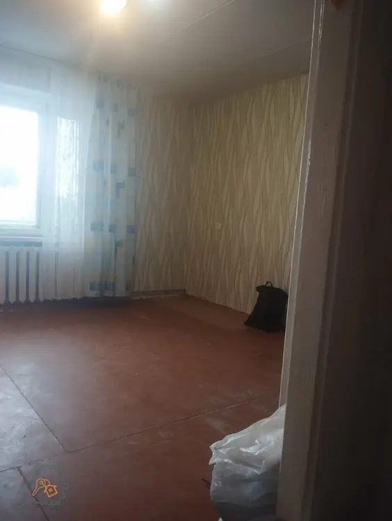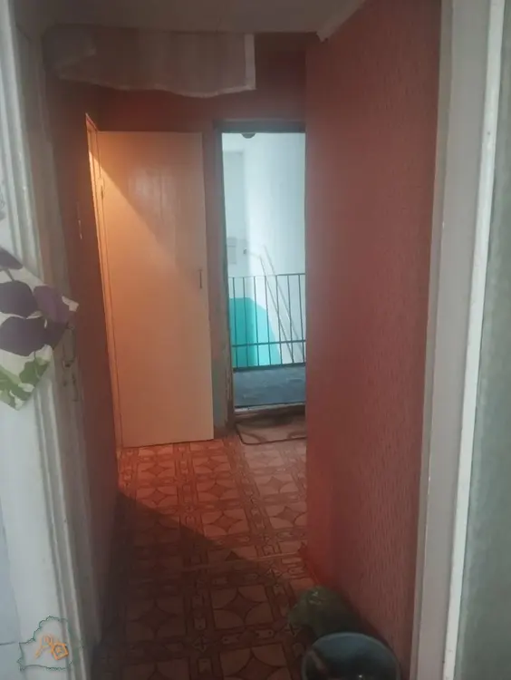 Не угловая. Выход на балкон через жилую комнату. Окна деревянные, балкон не застеклён. На полу ДСП, раздельный санузел.