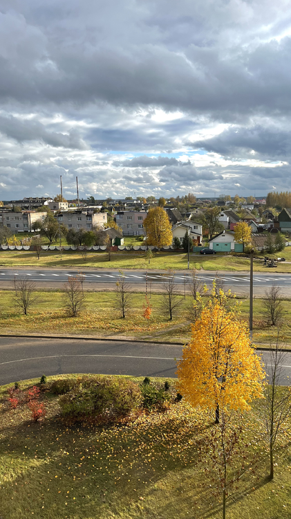 Центр города. Рядом большой магазин евроопт, кафе, аптека, поликлиника, автобусная остановка, заправка, церковь.