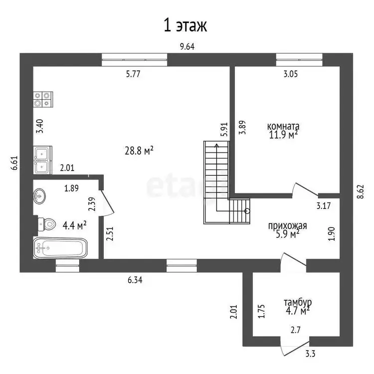 Сердце дома — просторная кухня-гостиная (28,8 м2)