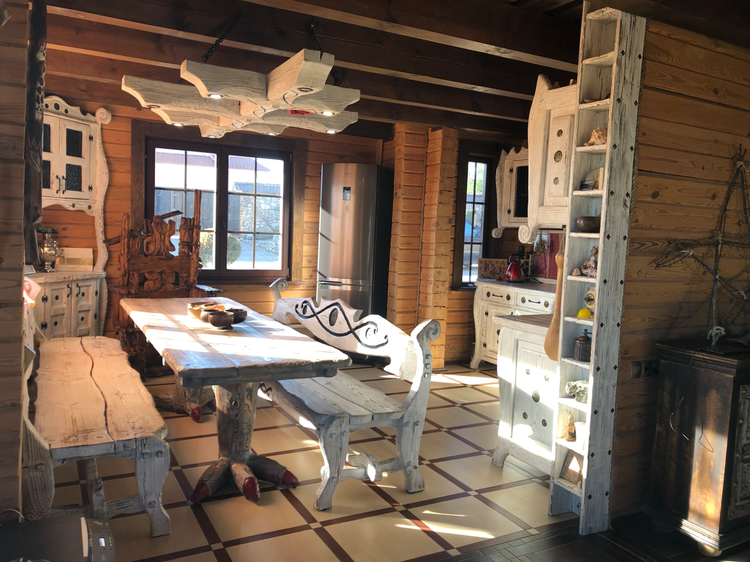 4. Вся техника в доме импортного европейского производства, при строительстве и обустройстве дома использовались самые качественные и дорогие материалы. Мебель из Италии, Германии. Кухня выполнена в старорусском стиле.