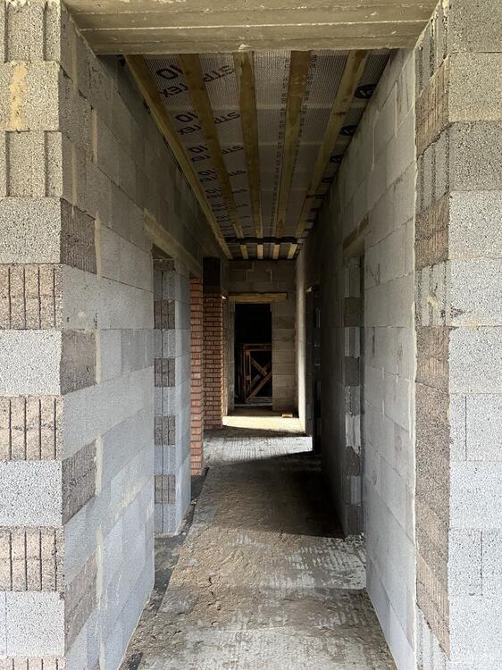 Фундамент ленточный, бетон W12. Стены из керамзитобетонных блоков «ТермоКомфорт» 400мм., перегородки керамзитобетонные блоки 120мм.
