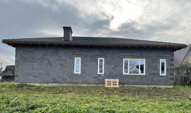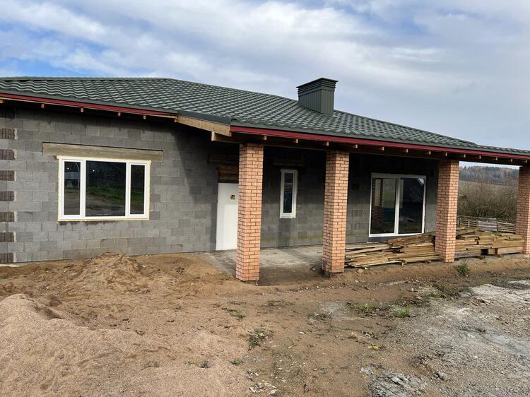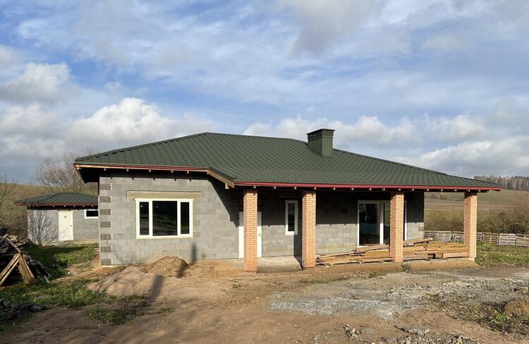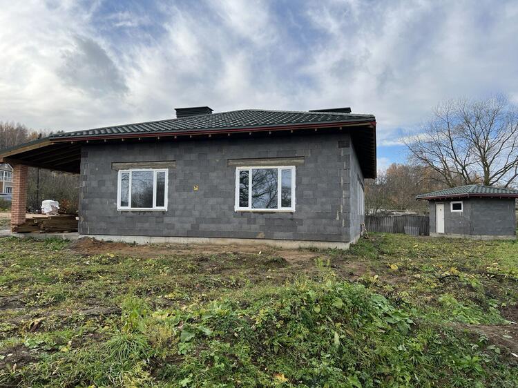 Проект дома согласован. Есть проект отопления и внутренней канализации. Общая площадь дома 152 м2 с большой террасой 34м2, хозпостройка 14 м2.
