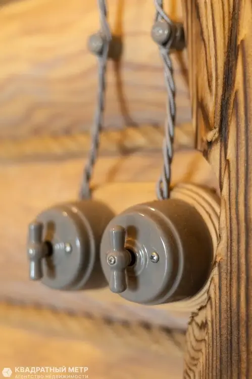 Мебель и элементы декора — ручная работа, включая кухню, кровать, шкафы, стол и даже дверные ручки. Стильная электропроводка в стиле лофт, на полу — ламинат, мрамор и гранит. Санузел с современной душевой и качественной сантехникой. Отдельная спальня в едином дизайнерском решении.