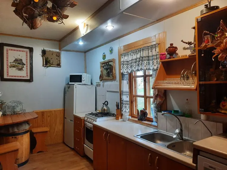 Агроусадьба стилизована под белорусскую избу , с баней, рыбалкой, детской площадкой, экспозициями, беседками, мангалом, автостоянкой, кухней, домиком для изготовления пиццы, малыми скульптурными формами с возможностью размещения до 15 человек. Находится на окраине деревни, соседей рядом нет. Рядом с агроусадьбой раскопки средневекового Городища 10 века. Хороший асфальтированный подъездной путь, большая территория около дома ( 0.02356 га). Все это обеспечит комфортное проживание либо занятие бизнесом. Городские маршрутки ходят регулярно. Приезжает автолавка.