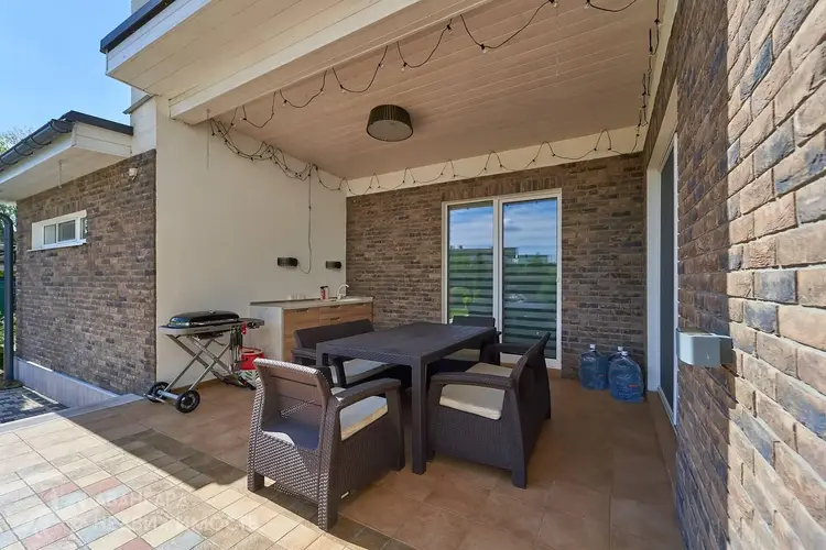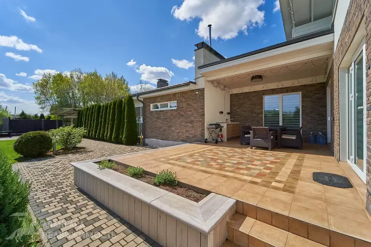 Общая площадь дома 222.7 м2. Просторная кухня 29.9 м2 с выходом на обустроенную террасу. Встроенная кухня с бытовой техникой: индукционная панель, холодильник Panasonic, духовой шкаф, вытяжка, посудомоечная машина, встроенная кофемашина. Столешница из натурального камня.