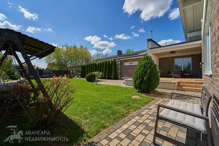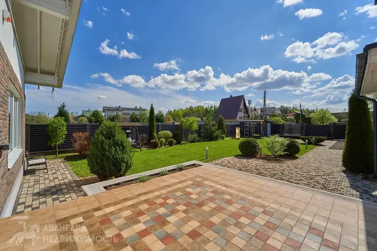 На участке выполнен ландшафтный дизайн, устлан качественный газон, установлена подсветка дома и участка, вымощены плиткой дорожки. Высажено большое количество декоративных растений.