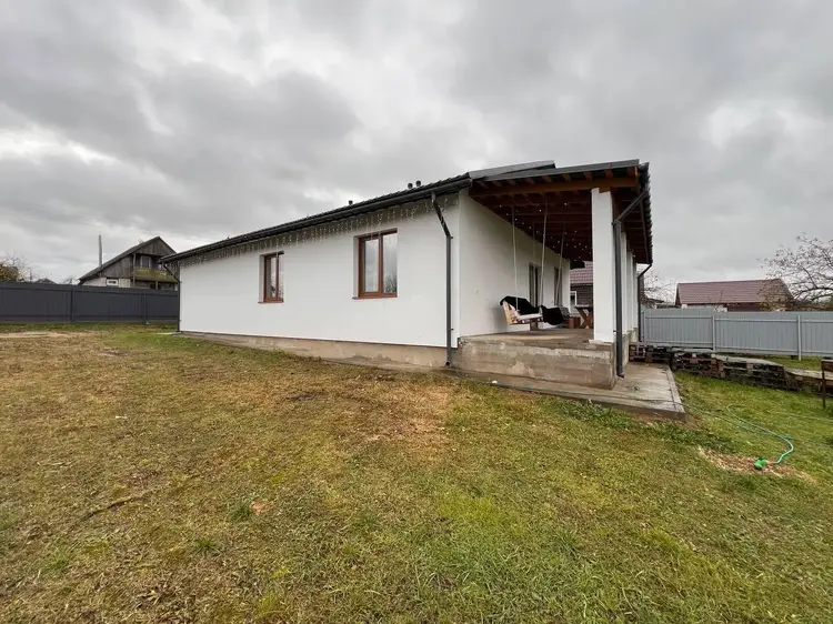 Дом одноэтажный, правильной формы, продуманной планировки с атмосферной террасой и выходом на задний двор.