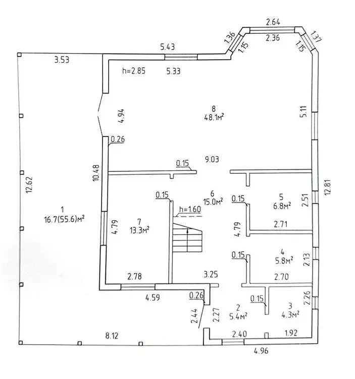 Высота потолков – 2.7 м.