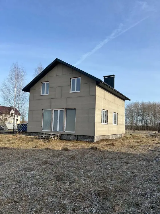 Дом выполнен из качественных материалов. Фундамент — ленточный. Каркасные деревянные стены, утеплен, обшит асбестоцементными плитами. Двускатная кровля — металлочерепица. Окна стеклопакеты ПВХ Salamander. Количество комнат – 4 (31.67 м2/15.63 м2/15.63 м2/13.62 м2).Кухня 8.72 м2 совмещена с гостиной 31.67 м2.