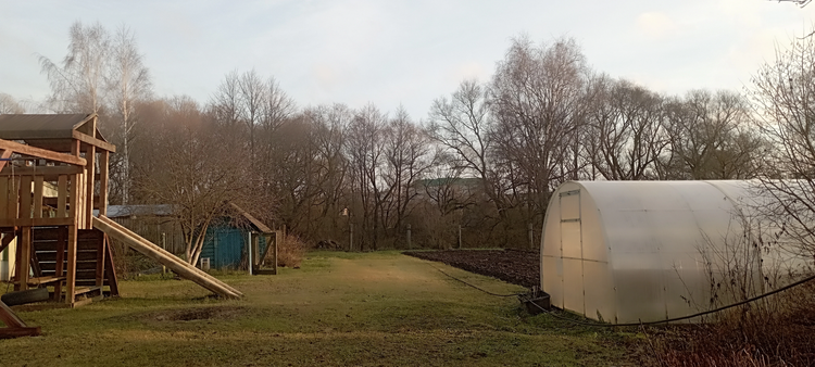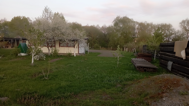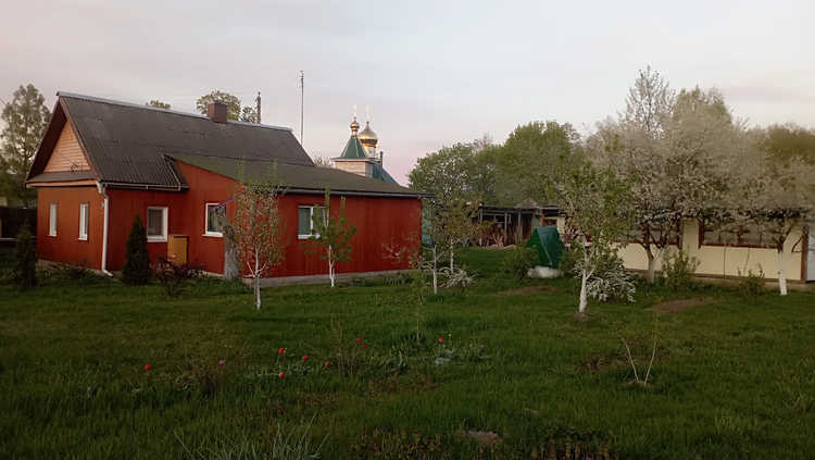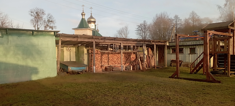 Также на участке баня,беседка, гараж, сарай для дров, летний домик с просторным подвалом. В конце участка протекает речка Лапка. Соседи с одной стороны, с другой православная церковь.