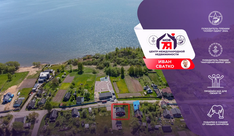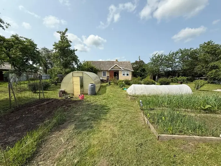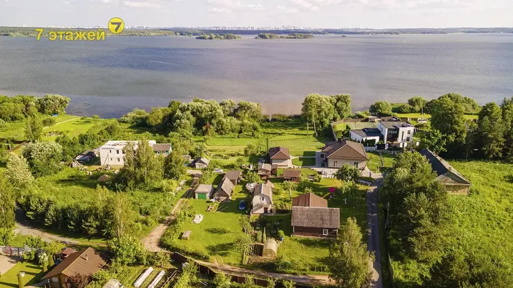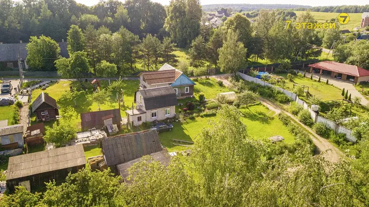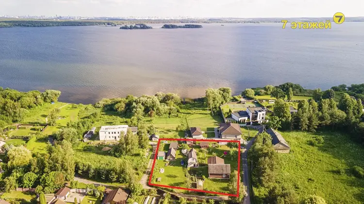 Дом расположен на участке в 9,78 соток с огородом, теплицей и плодоносящим садом, откуда открывается прекрасный вид на Минское море.