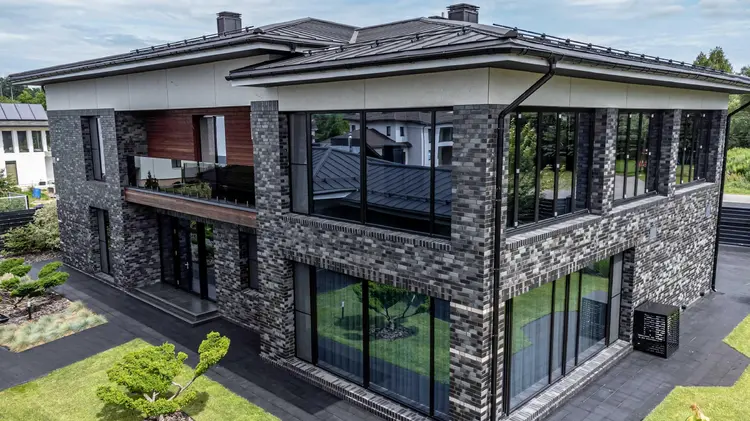 - Стены: кирпич с утеплением и фентилируемым фасадом немецким клинкерным кирпичем АВС толщиной 65 см, утепление 100 мм каменной ватой.