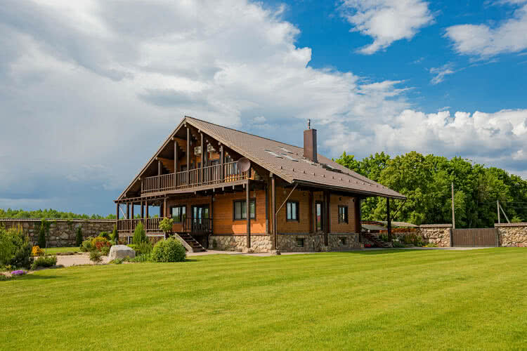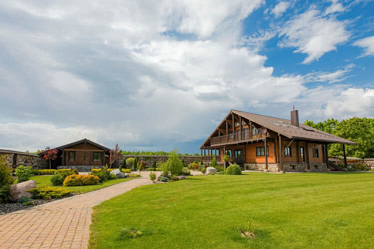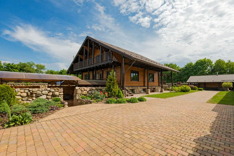 Окружен оригинальным - единственным в своем роде каменным забором, ручной кладки. Дубовые ворота, открываются от брелока, калитка. Ворота с электроприводами Doorhan;