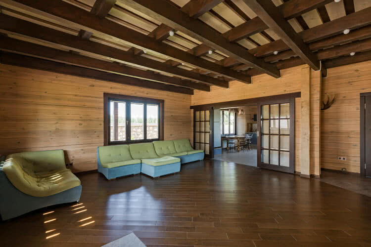 Стены окрашены Remmers HK Lasur снаружи. И Remmers whohraum lasur внутри. Два жилых этажа. Высокие потолки Н=3.35 м. Швы герметизированы с применением специального акрилового состава – тёплый шов. Для строительства дома использовались самые высококачественные, экологичные, натуральные материалы;