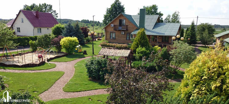 - газоны (~ 50 соток), дорожки, фонари освещения, скамейки и множественные элементы ландшафтного дизайна;