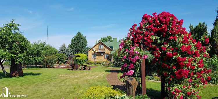 На территории три дома. Участок под каждый дом - 0.25 га. Общая площадь участков -0.75 га. Постройки выполнены из экологически чистых материалов; мебель ручной работы изготовлена местными мастерами из качественных дубовых пород.