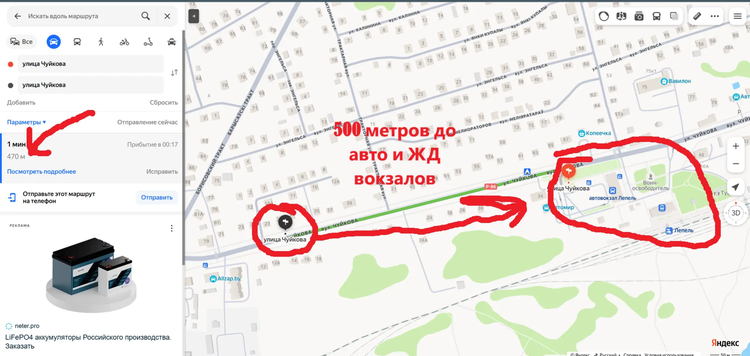 авто и ЖД вокзалы (400метров), и прочее.