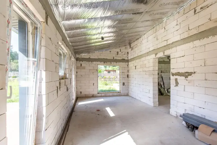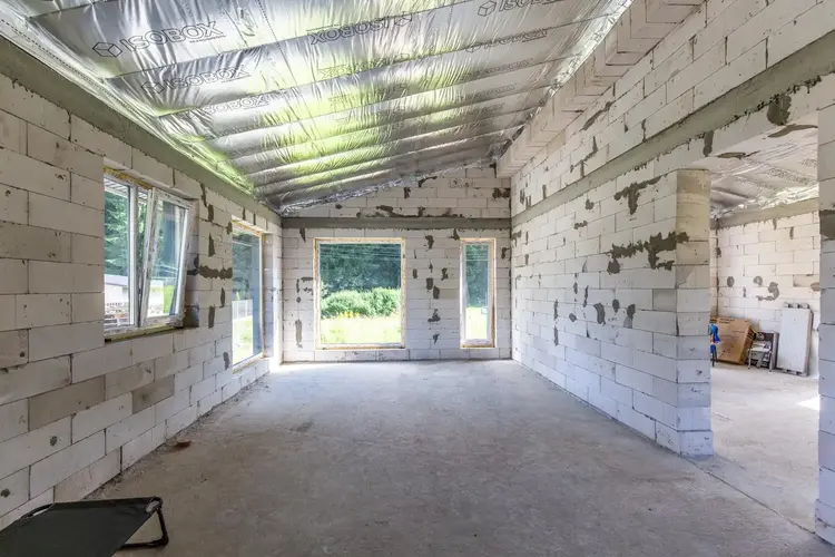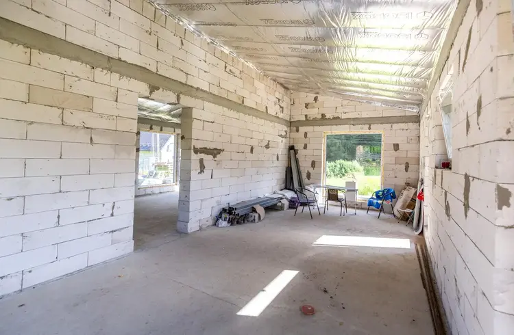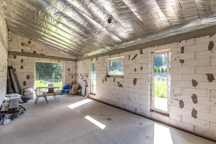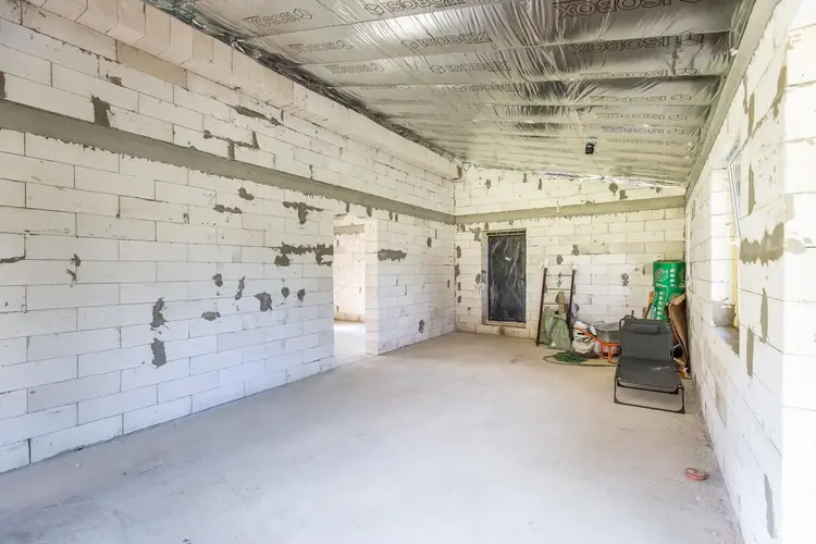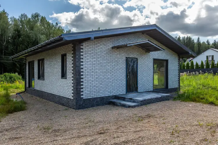 • Фундамент – плита, стены – г/с блоки 300 мм, фасад – термопанели с утеплителем и клинкерной плиткой.