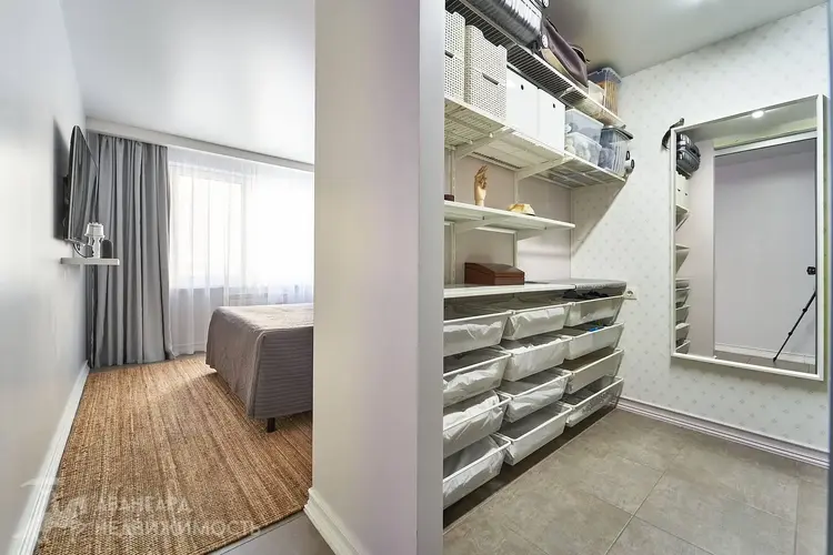 В просторной комнате 17.1 м2 на полу плитка, стены окрашены. Предусмотрена вместительная гардеробная.