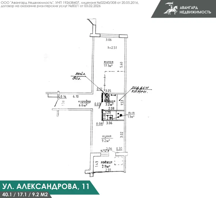 Предлагаем вам 1-комнатную квартиру площадью 40.1 м2 в аг. Лесном, ул. Александрова, 11