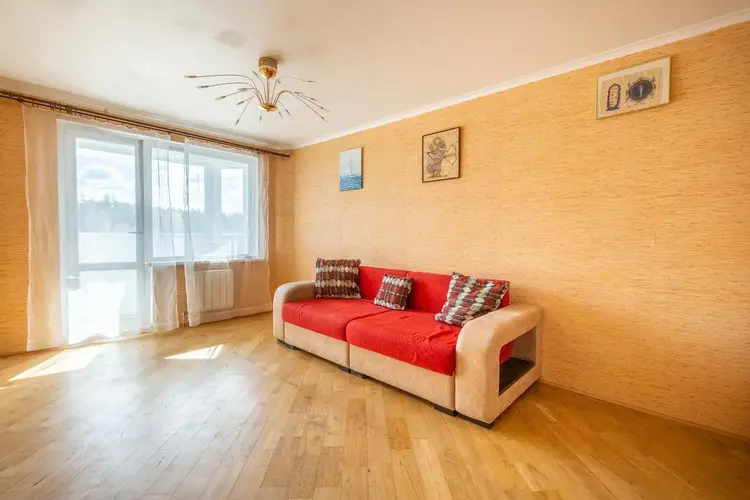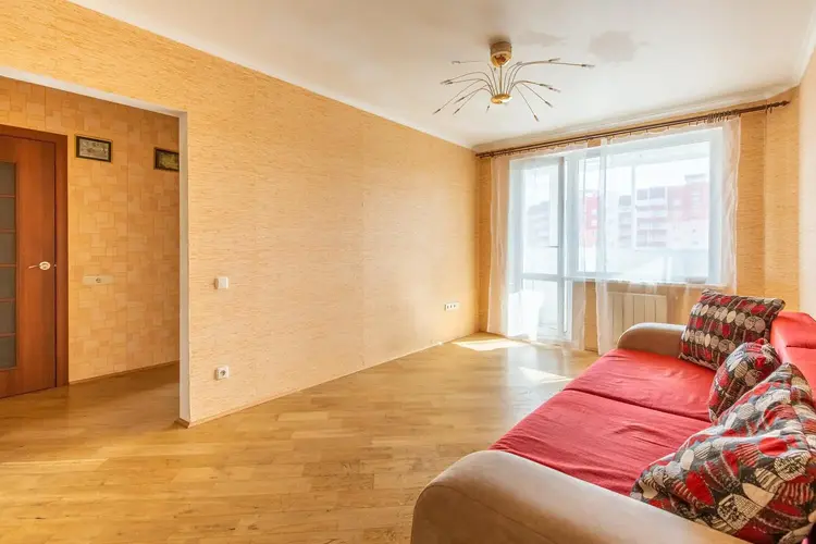 Установлены стеклопакеты, натяжные потолки; на полу в жилой комнате ламинат, в коридоре и на кухне - линолеум, в санузлах - аккуратная плитка. Лоджия застеклена.