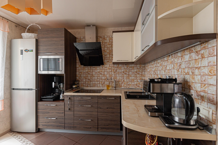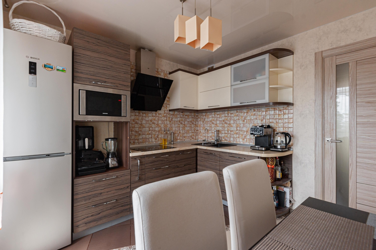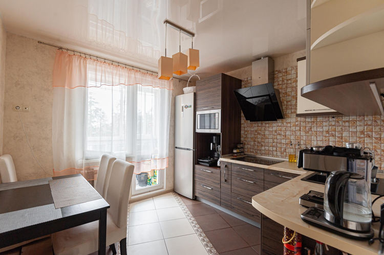 Квартира выполнена в спокойных тонах с использованием качественных материалов. На полу в комнате – ламинат, на кухне и коридоре– практичная керамическая плитка.
