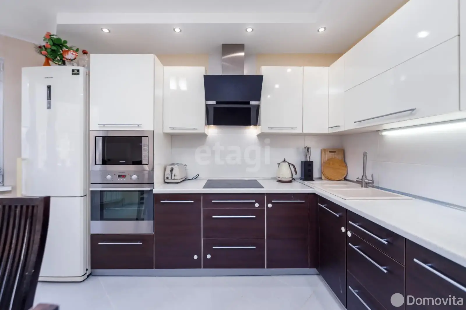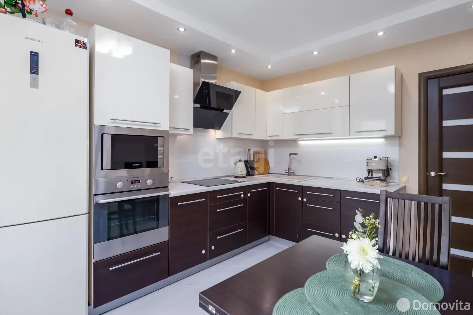 Встроенная кухонная мебель оснащена фурнитурой «Blum» и укомплектована бытовой техникой.
