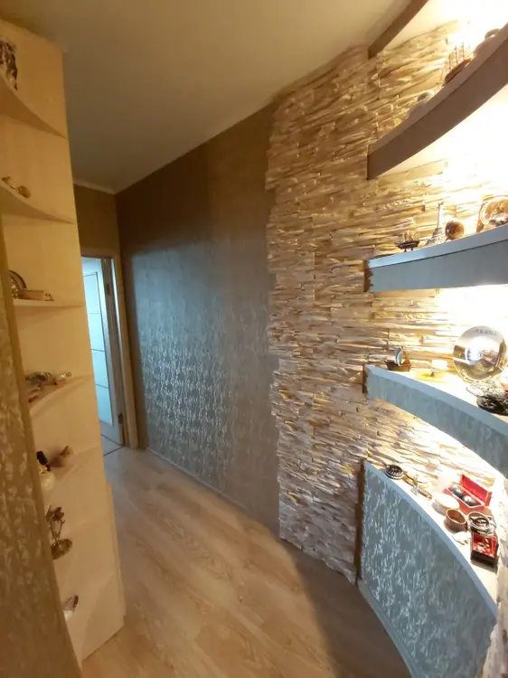В квартире выполнен ремонт из высококачественных дорогих материалов в тёплых натуральных тонах: на полу ламинат, на кухне и в санузлах — керамическая плитка, стены отделаны декоративным камнем. Электрокамин добавляет не только душевного тепла. Утеплённая и застеклённая лоджия - дополнительное пространство для релакса.