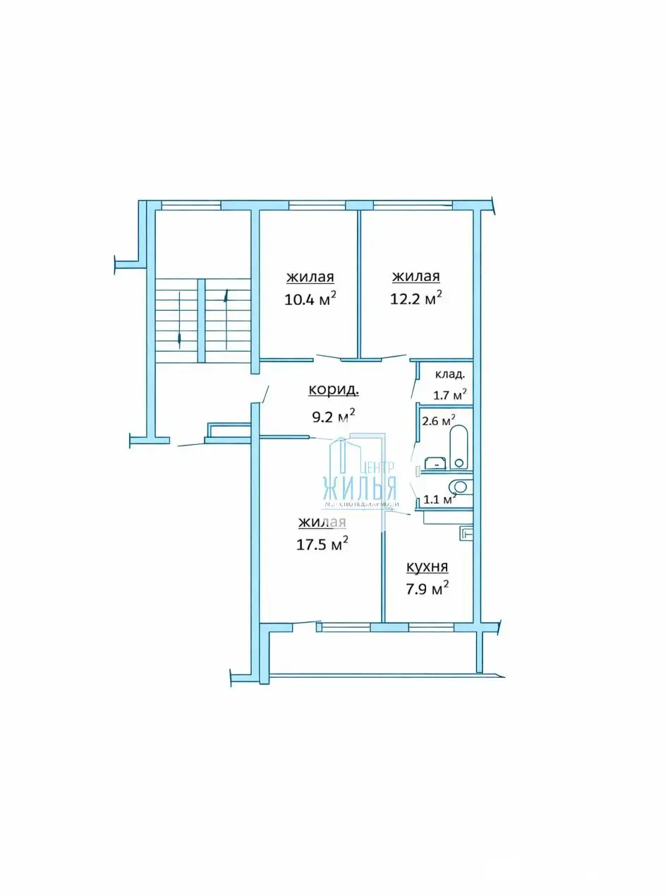 Достоинством квартиры является удачная планировка: три раздельные комнаты, раздельный санузел, просторный широкий коридор и просторная лоджия.