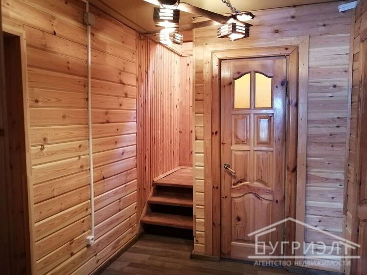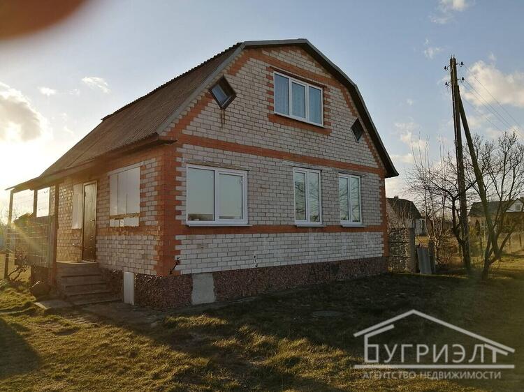 Жилой дом в ближайшем пригороде Бреста 1999 г. постройки. Деревянный дом с мансардным этажом из бруса, утеплен - минеральной ватой, облицован силикатным кирпичом. Крыша мансардная, кровля - шифер. Установлены окна ПВХ, межкомнатные двери - из массива дерева. Общая площадь 56,4 кв.м, жилая 31,8 кв.м. Гостиная 22,9 кв.м. и две спальни расположены на разных этажах, кухня 7,7 кв.м, санузел и прихожая. Стены оформлены с применением материалов натурального дерева и обоев, потолки 2,60 м, деревянные полы. Установлено качественное сантехническое оборудование. Комнаты обставлены мебелью, в кухне - встроенные шкафчики с нишами для бытовой техники. Коммуникации: электричество - централизованное, отопление - печное и электрический конвектор, водоснабжение - скважина и гидрофор, канализация - автономная. Земельный участок площадью 0,1146 га огорожен с трех сторон бетонным забором, на территории имеются гараж, сарай и баня. Удобное транспортное сообщение с г. Брестом. от черты г. Бреста 8.8 км, подъездные путидо асфальта 3 км, Ж/д сообщениео.п. Харитоны 1 км. Лот 220274