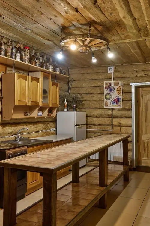 У каждого дома есть своя кухня, оборудованная всем необходимым.